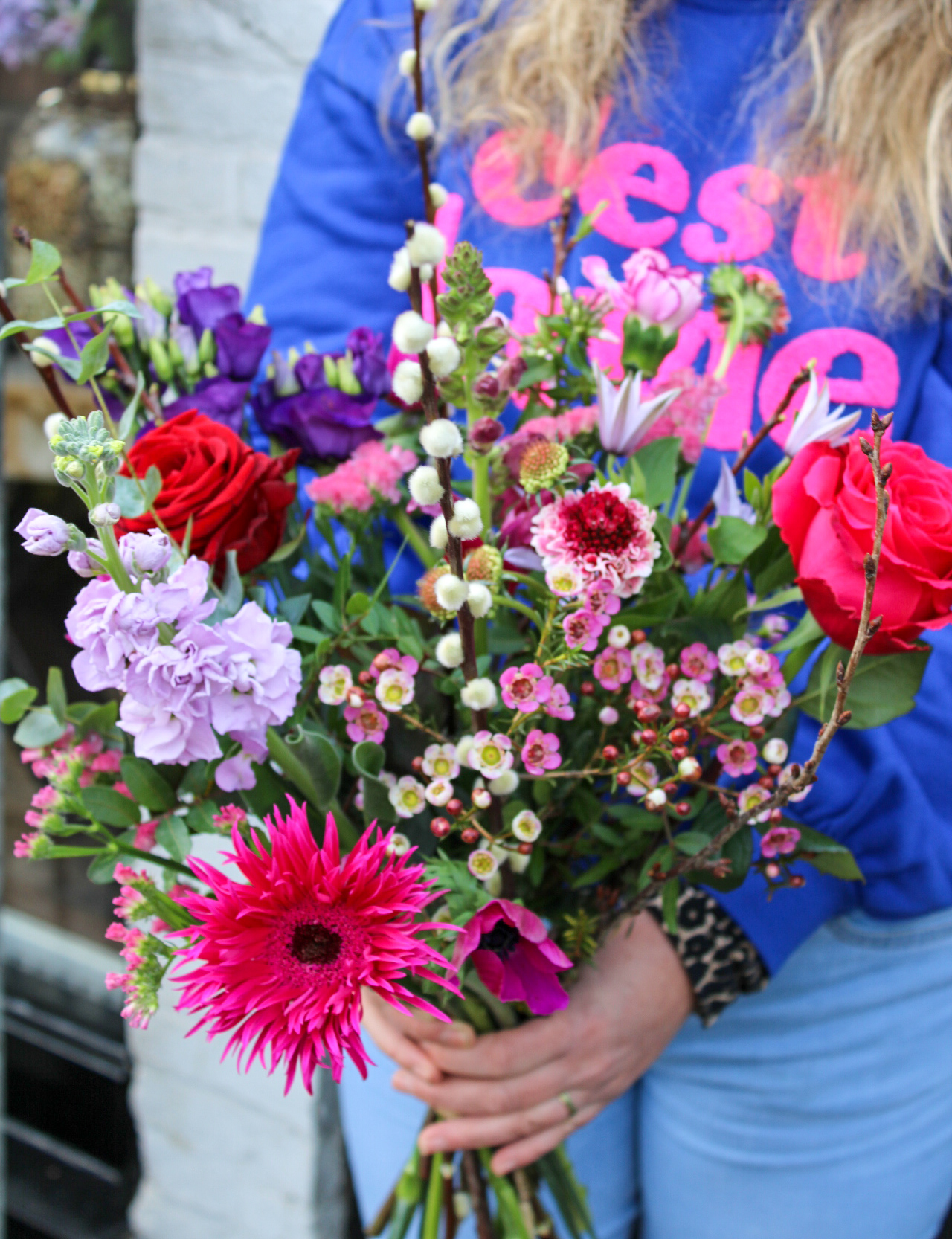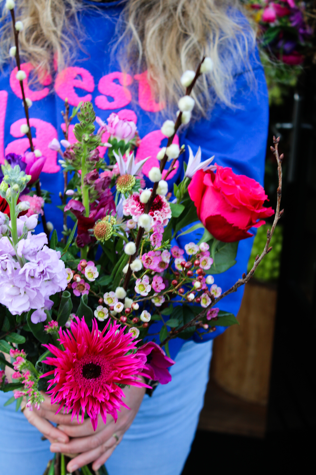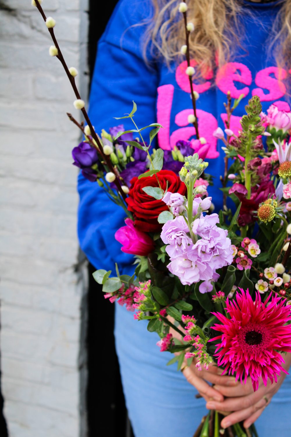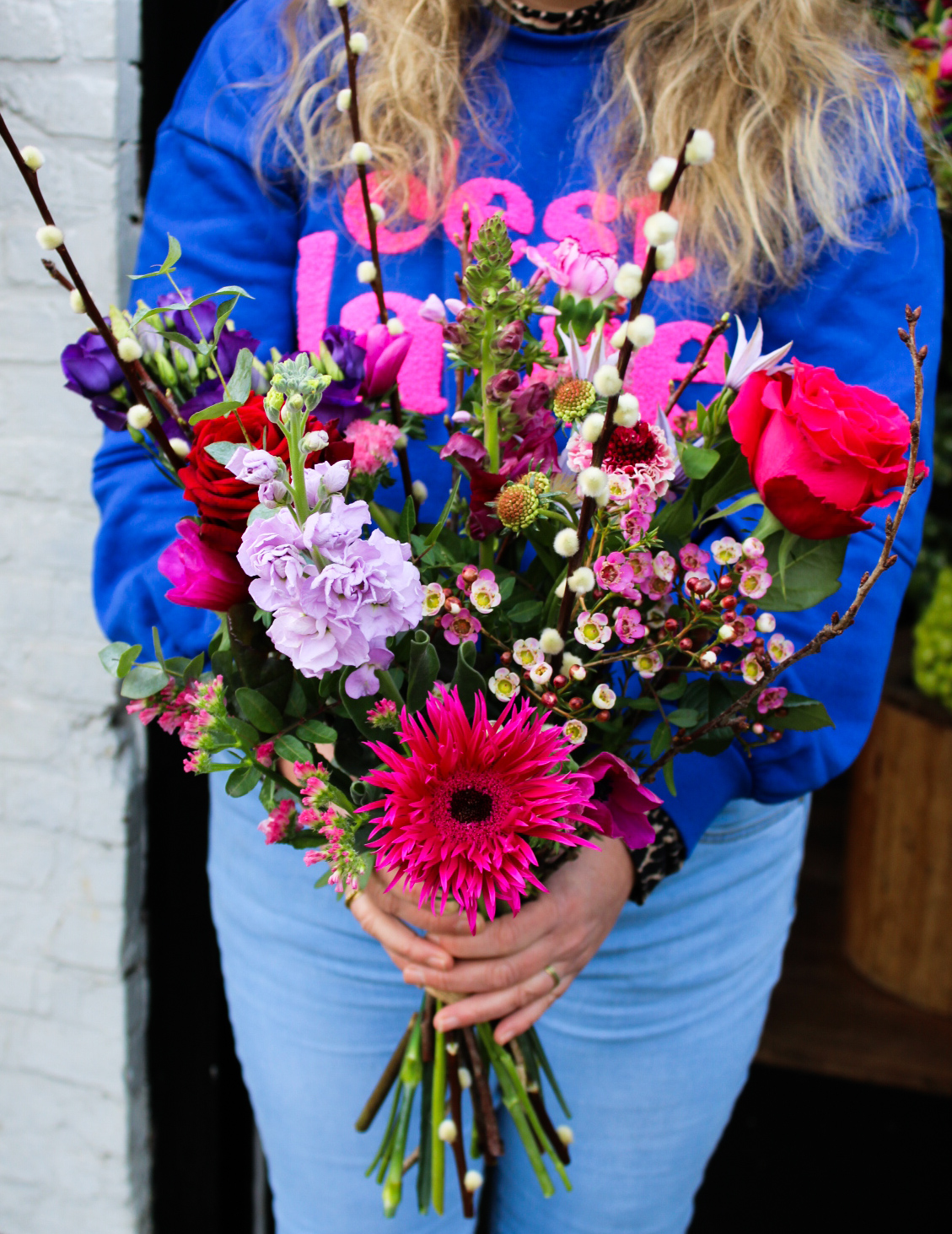 Voor de allerliefste Valentijn! Een prachtig plukboeket in mooie warme roze, rood en paars tinten. Een liefdevol boeket met zorg en liefde voor jou samengesteld.
